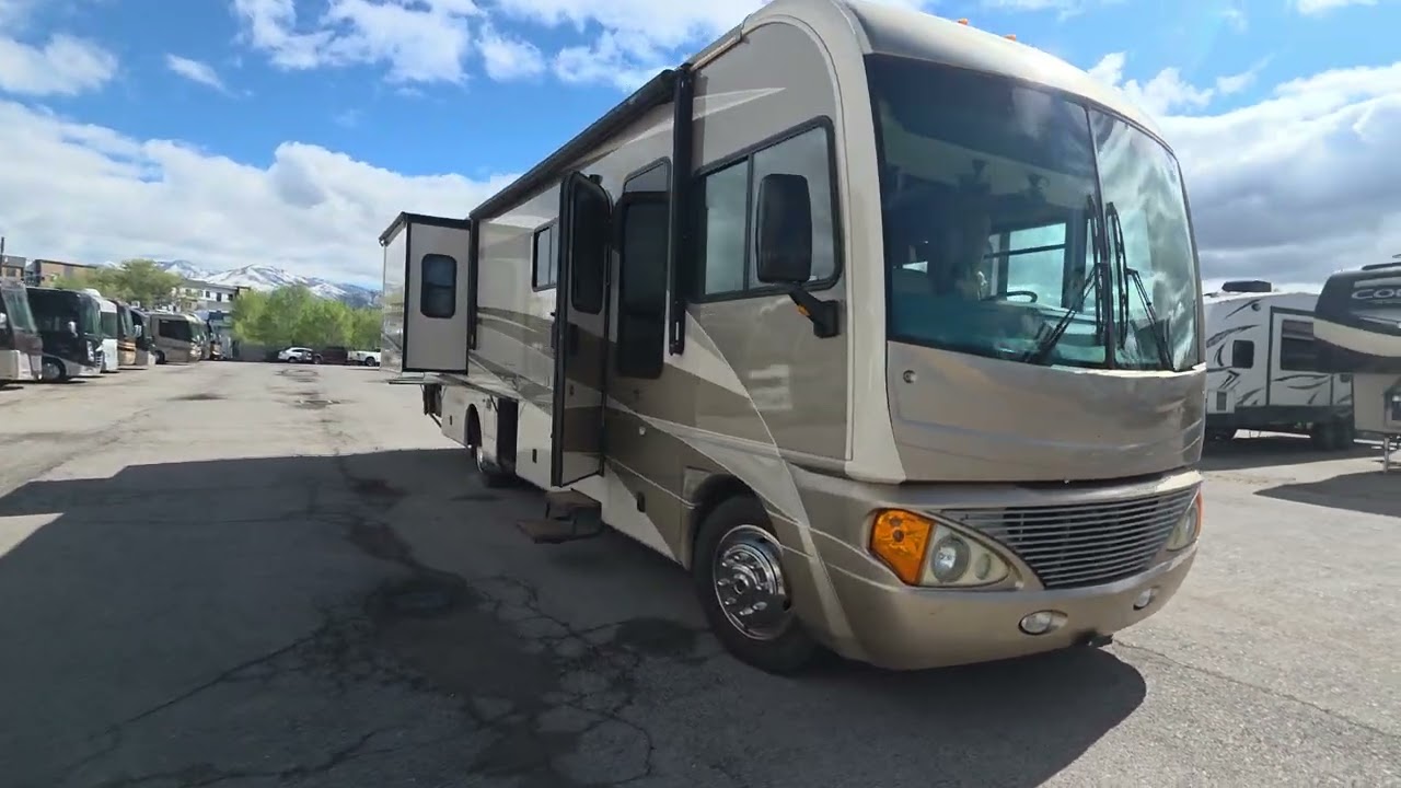 Built on the Workhorse W24 chassis, this 2005 Fleetwood Pace Arrow 36D is a well-cared-for trade-in with full body paint and a reputation for comfort, space, and reliability. With 61,257 miles and 950 generator hours, this coach has been maintained and shows very clean.