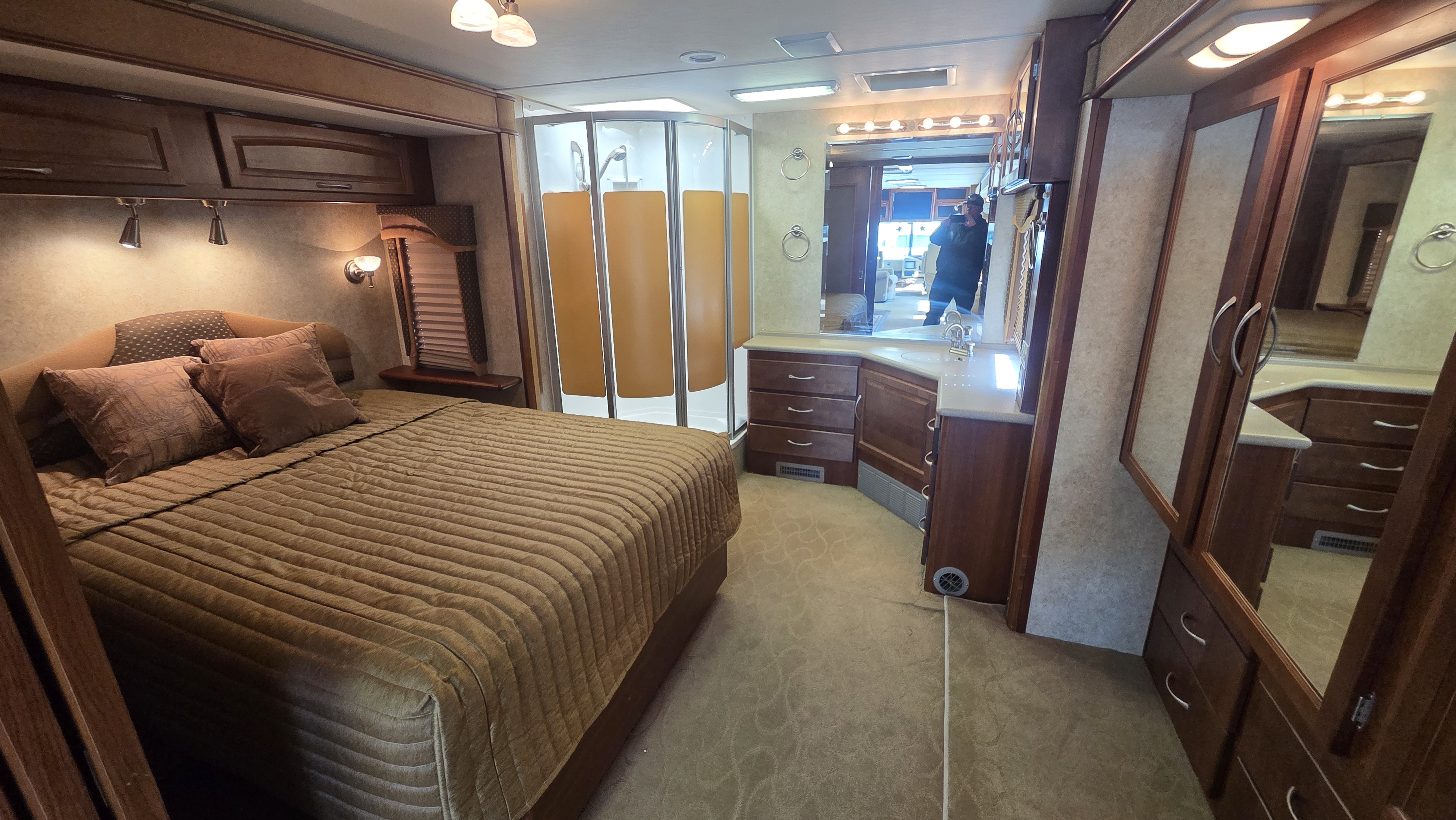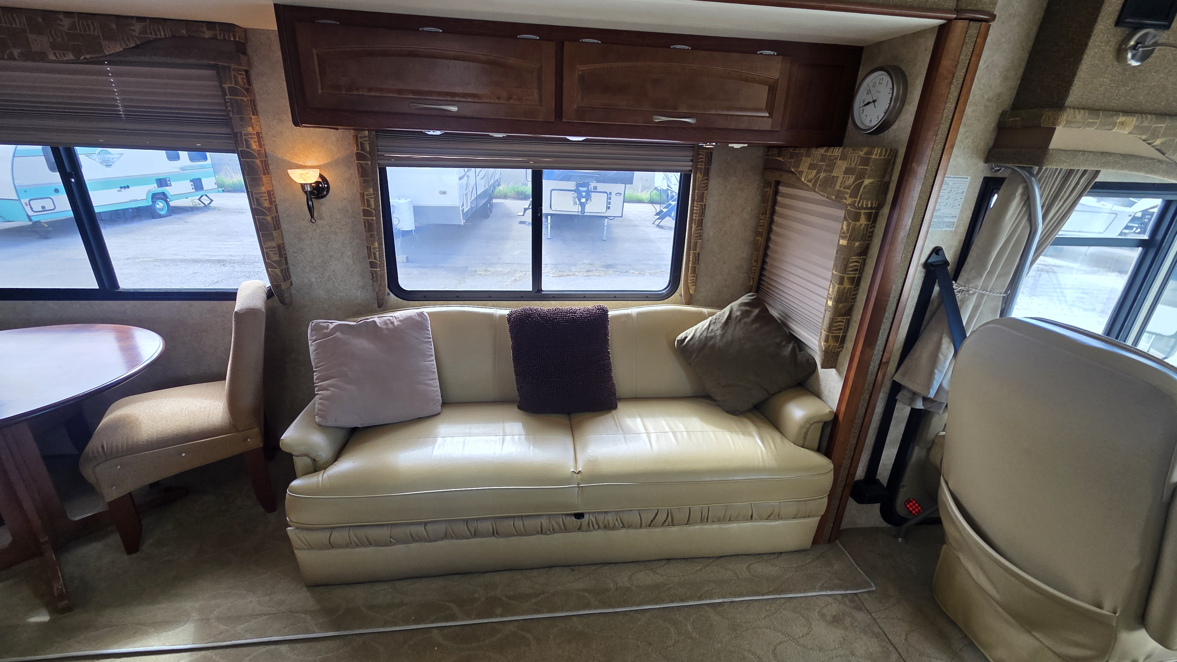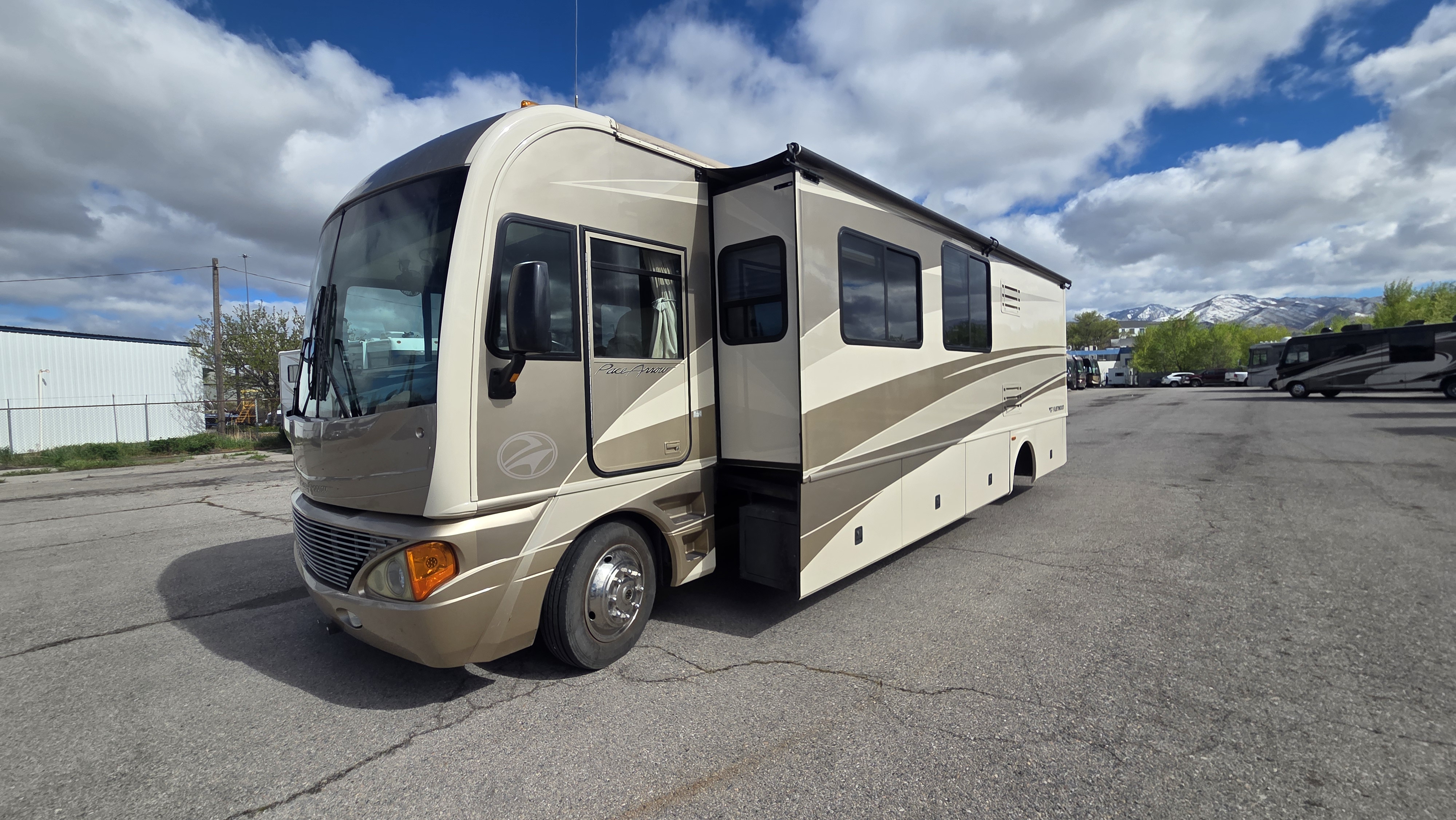 This Pace Arrow 36D stands out for its spacious layout and higher-end finishes for its class. The full wall slide dramatically increases living space, while the split bath design improves usability and privacy.