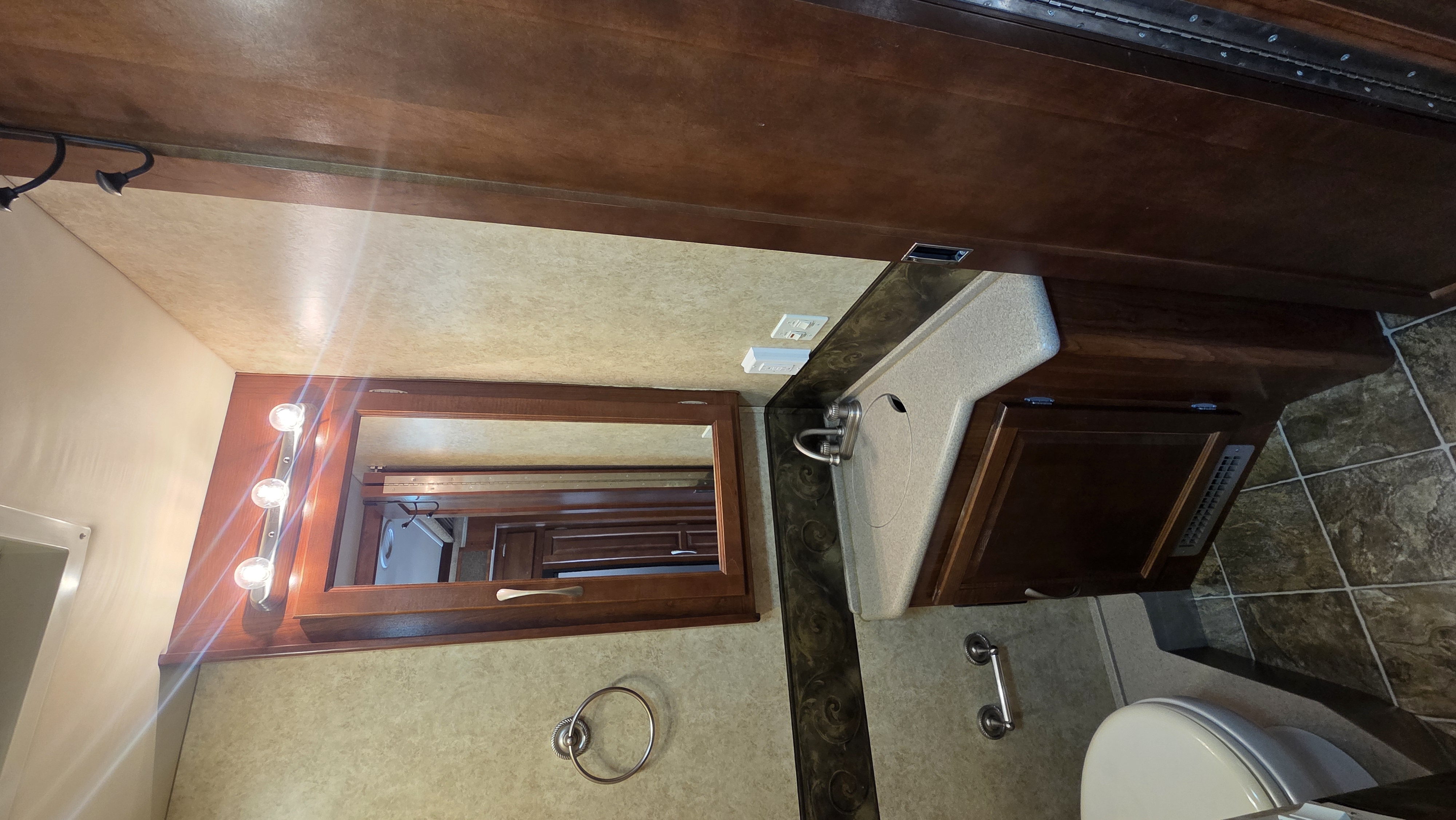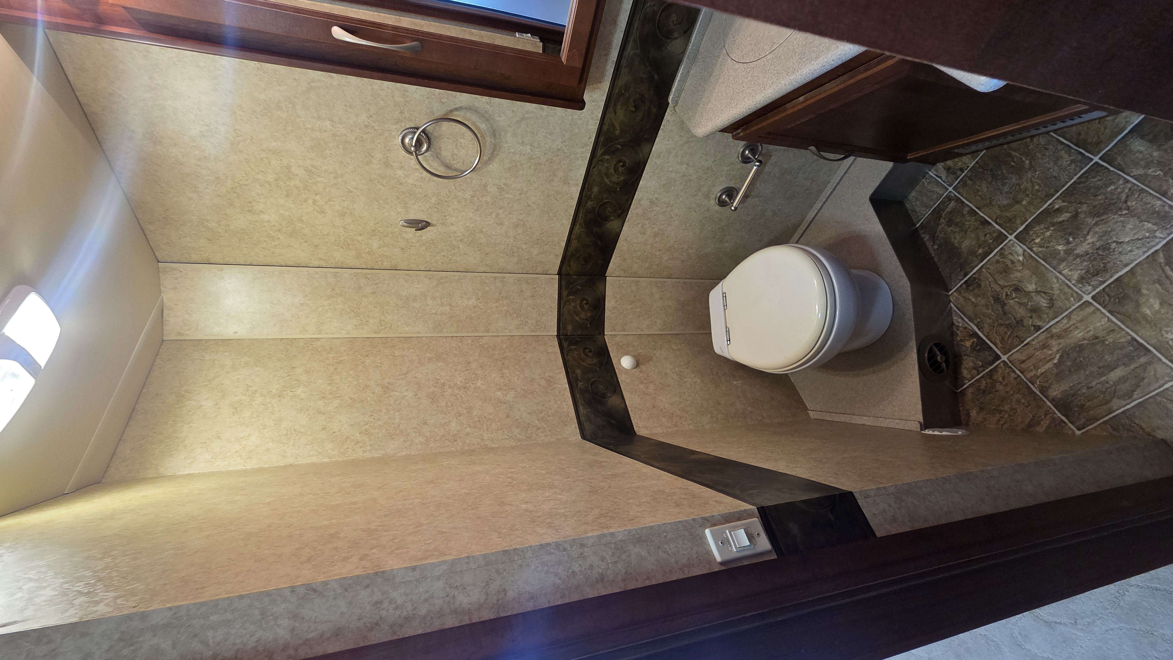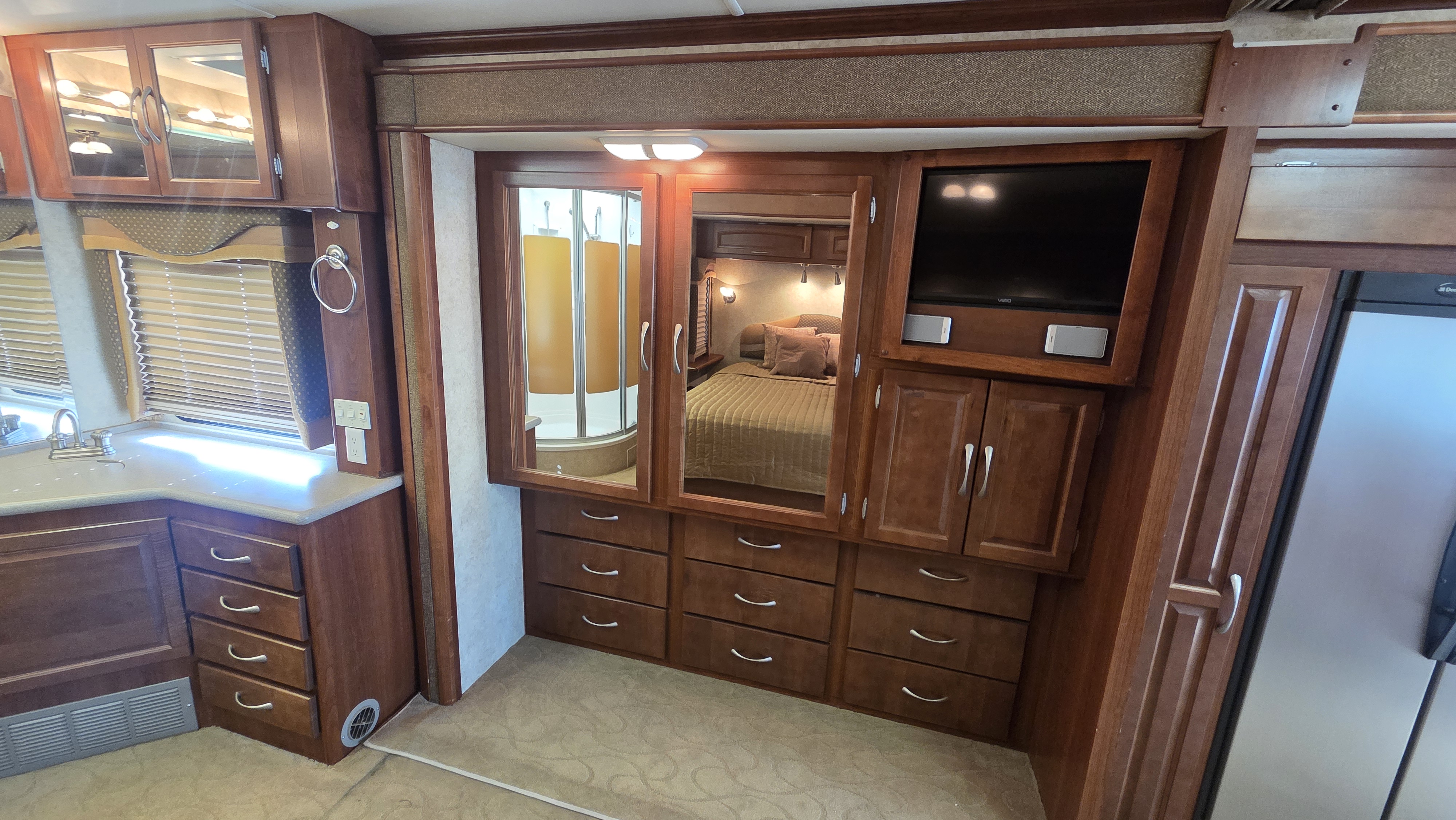 This Pace Arrow 36D stands out for its spacious layout and higher-end finishes for its class. The full wall slide dramatically increases living space, while the split bath design improves usability and privacy.