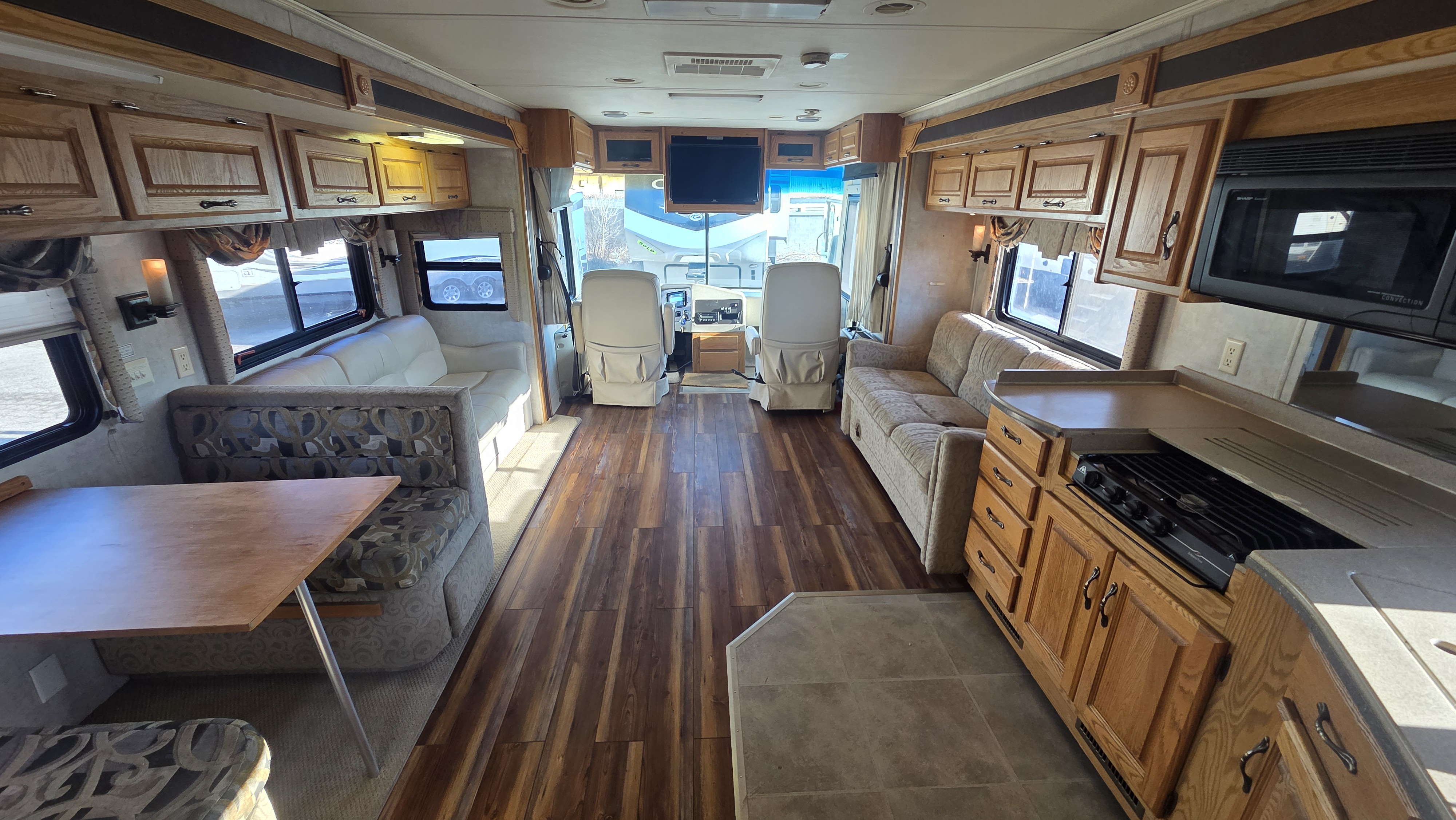 This Monaco Knight 38PDQ is an excellent option for buyers looking for a quality-built diesel pusher with strong Cummins power, factory inverter capability, four slide-outs, new tires, and a spacious eight-person sleeping layout.