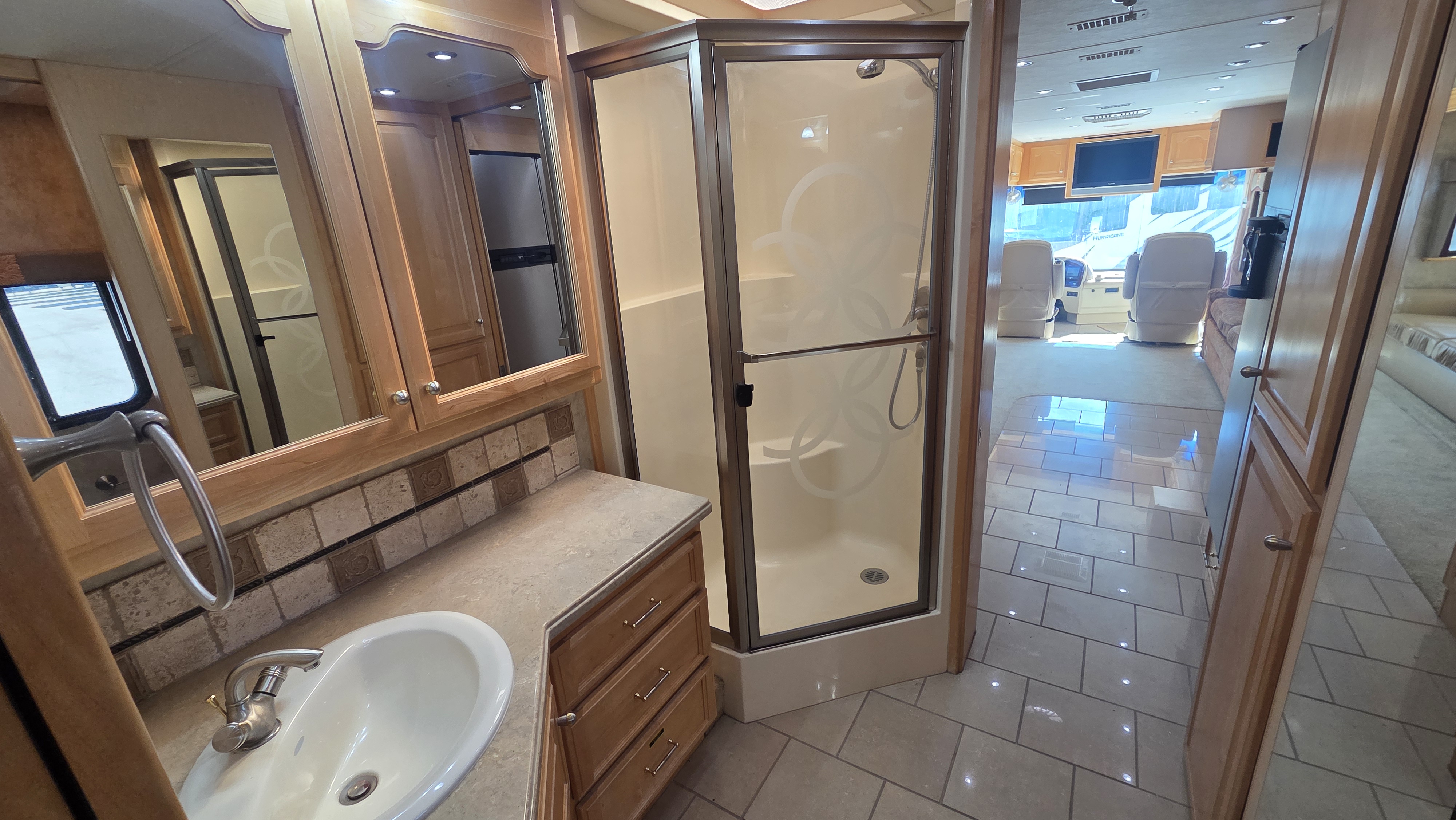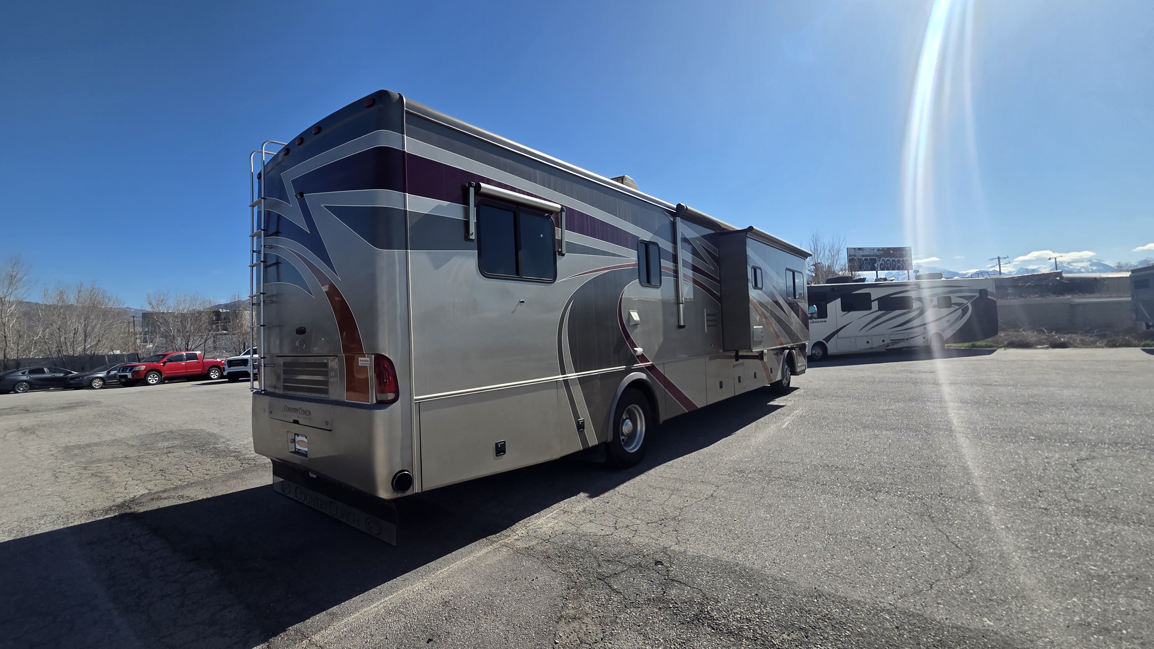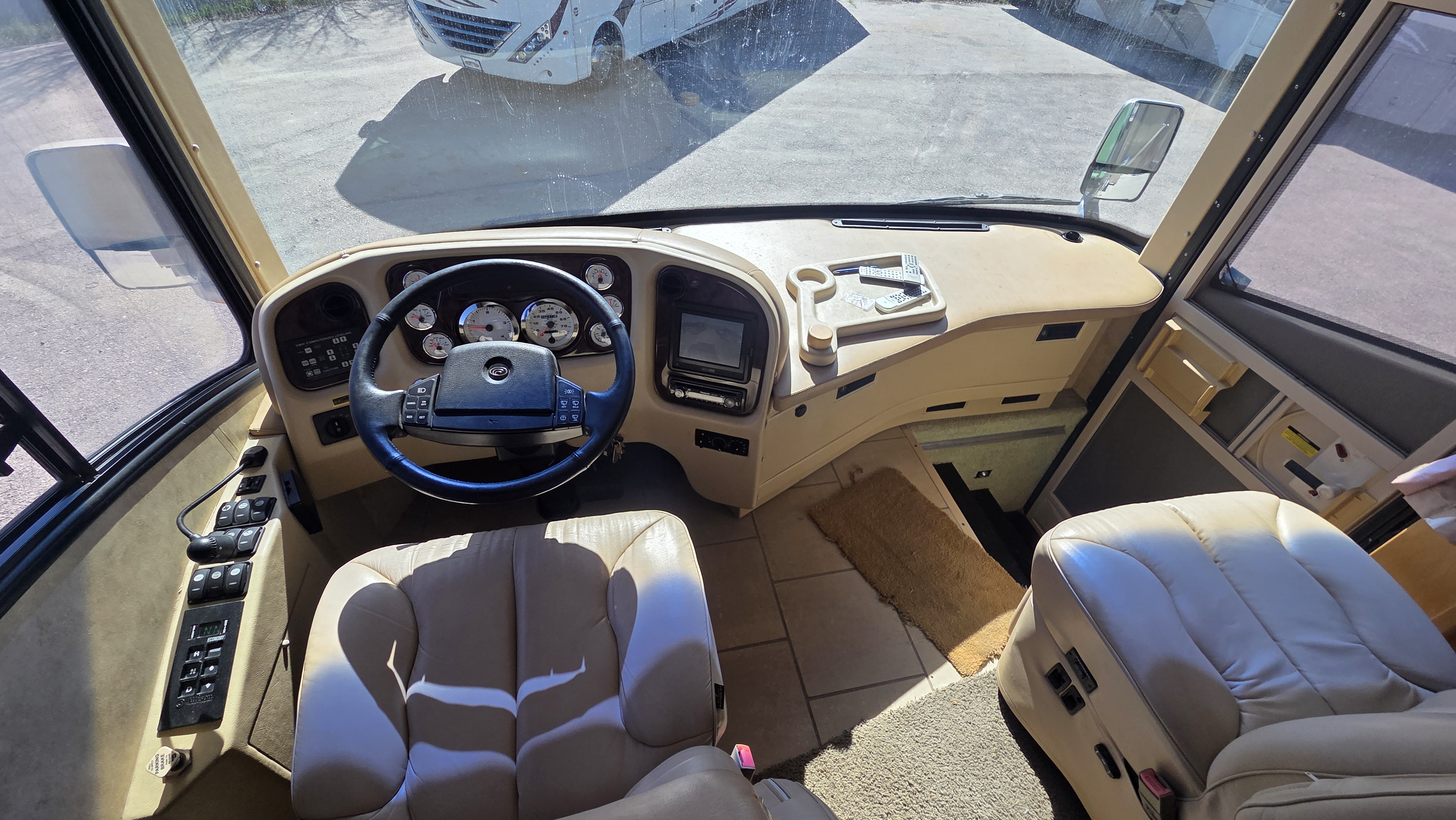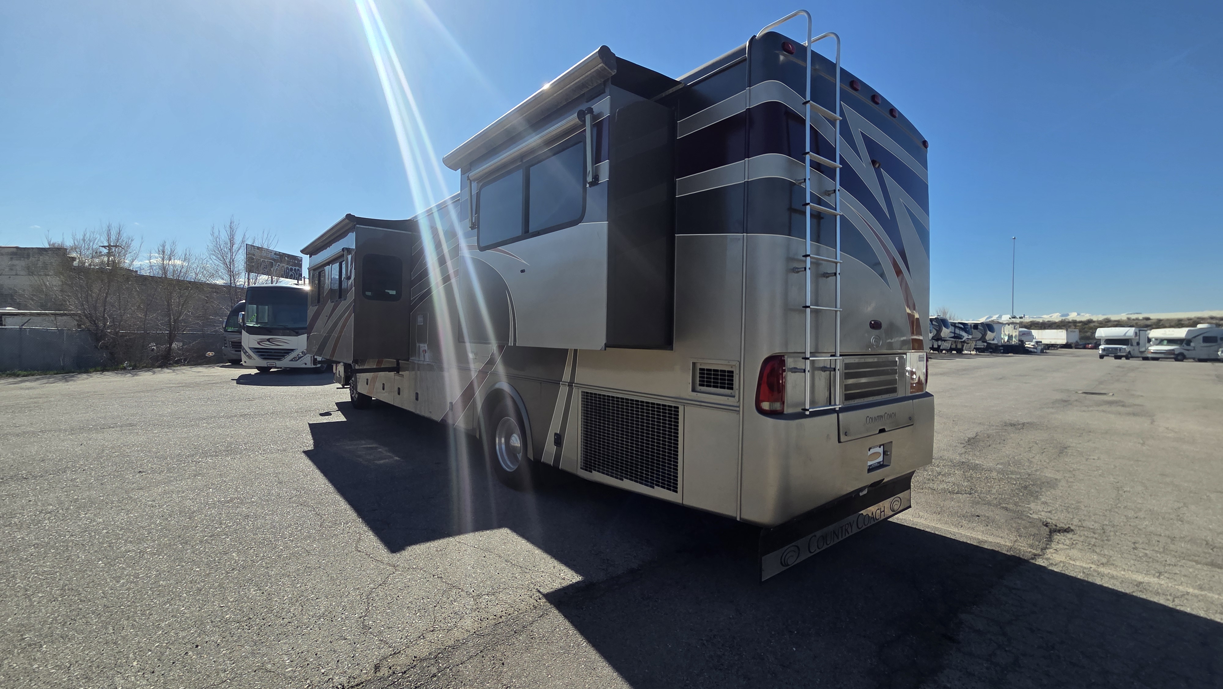 This 2006 Country Coach Inspire 360 Genoa diesel pusher is a high-end luxury motorhome built on the DynoMax raised rail chassis and powered by a 400 HP Caterpillar C9 turbo diesel paired with an Allison 3000MH 6-speed transmission. Country Coach was known for exceptional build quality, solid hardwood cabinetry, and bus-style construction, making these coaches highly sought after.