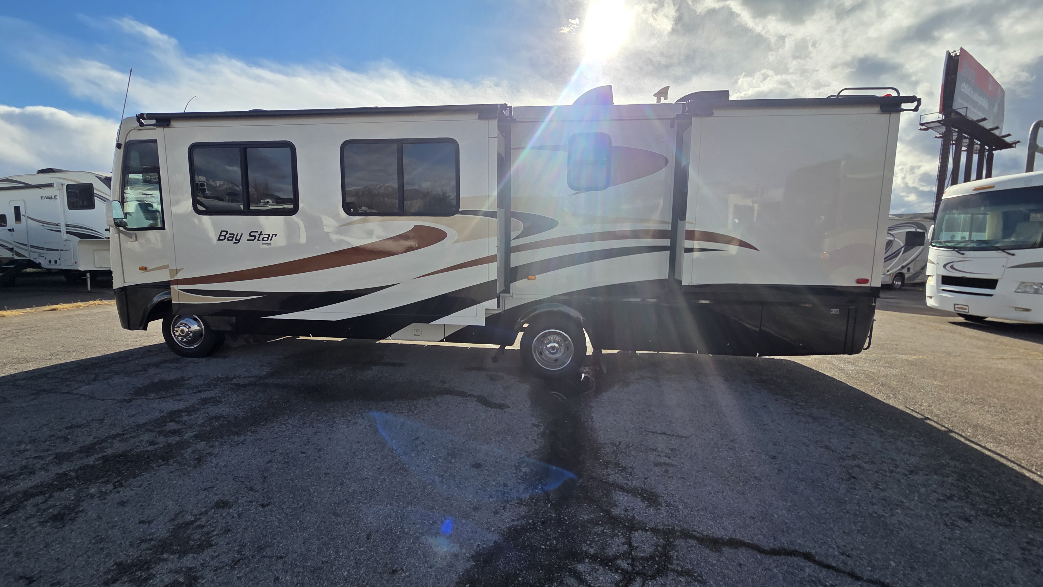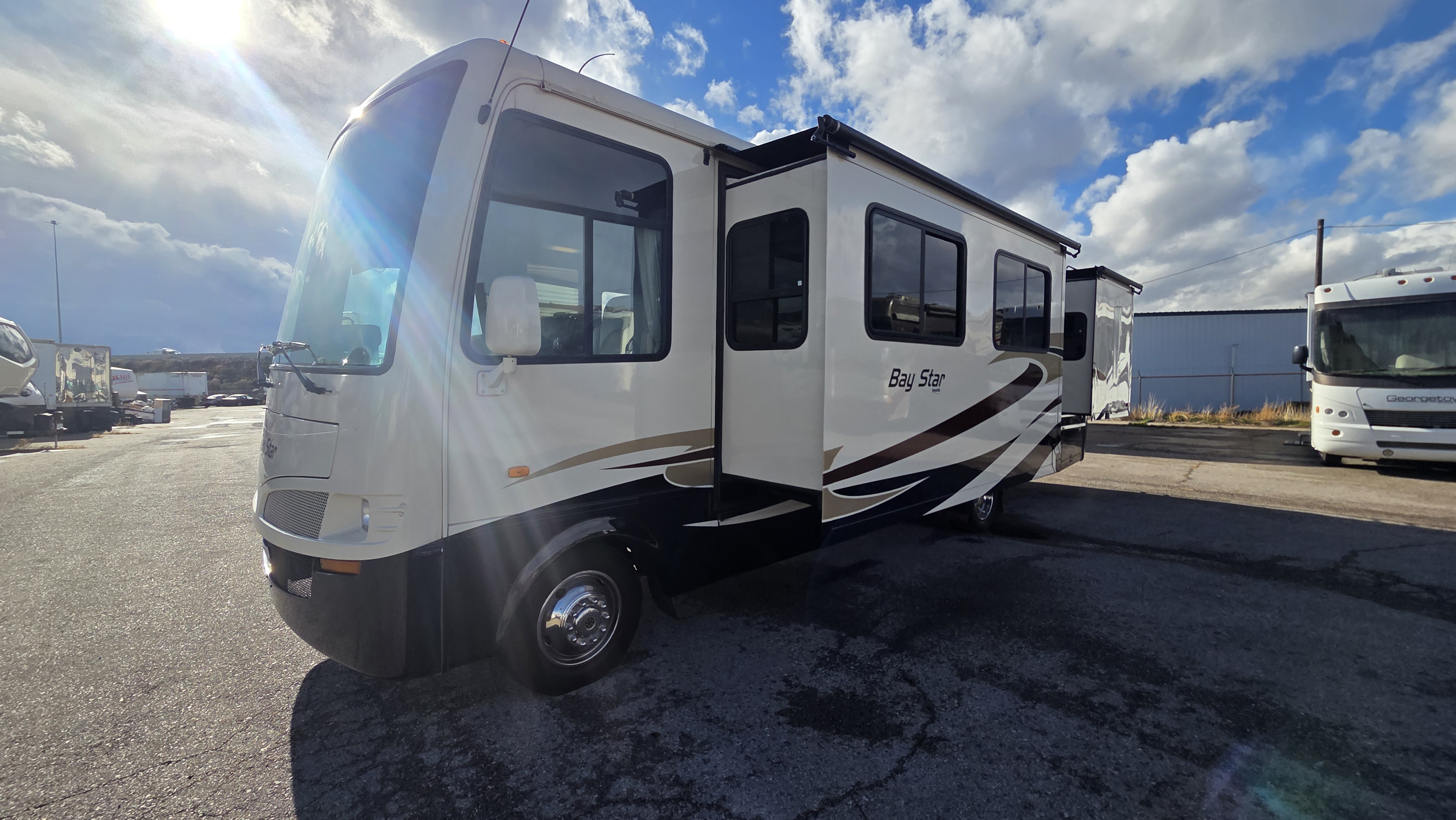 This Newmar Bay Star 3201 delivers dependable Ford gas performance combined with Newmar craftsmanship in a comfortable two-slide layout designed for couples or small families.