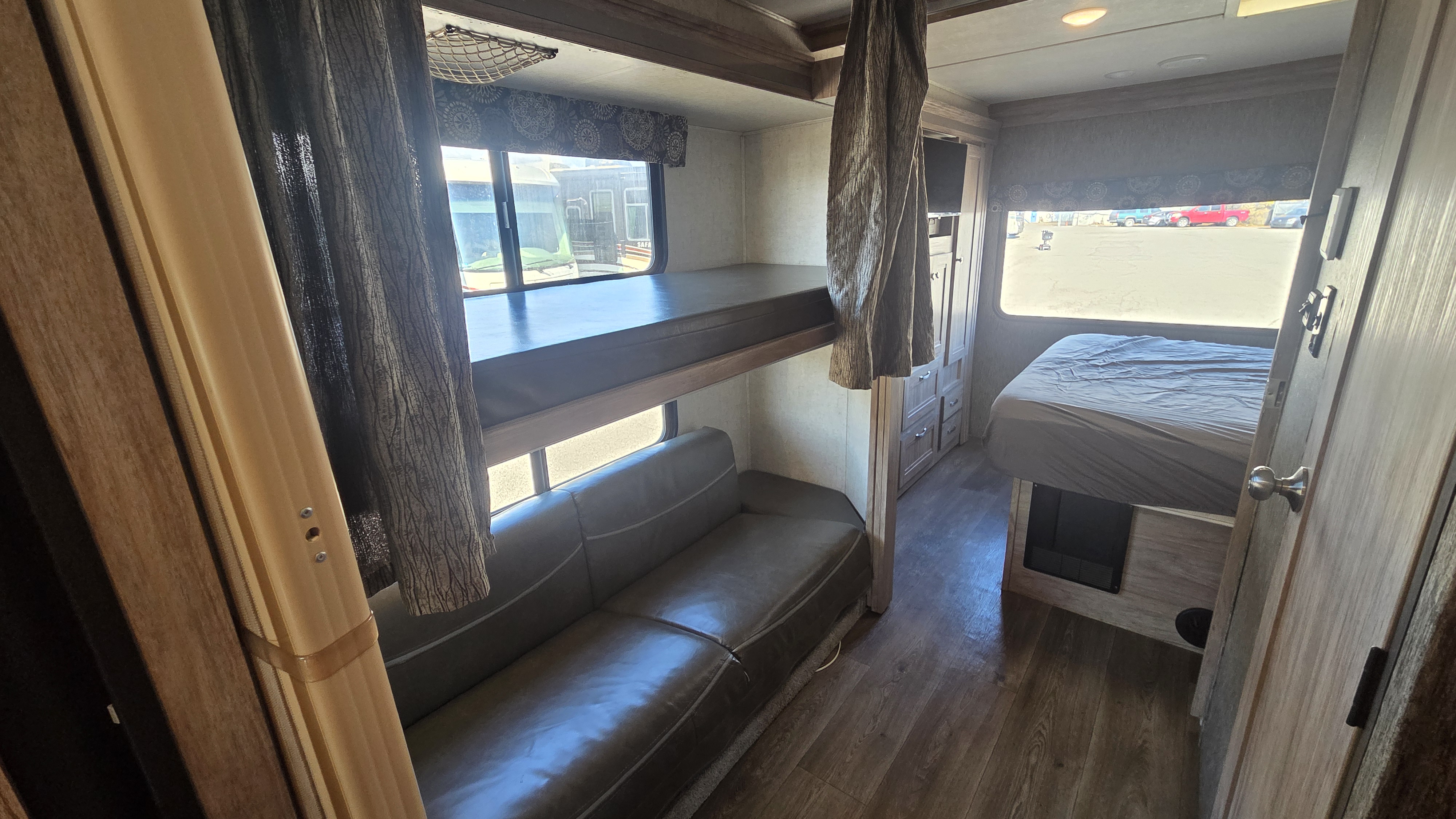 This 2017 Forest River Sunseeker 3170DS is a spacious bunkhouse Class C motorhome built on the Ford E450 chassis. It features two slide-outs, multiple sleeping areas, and durable laminated construction. This coach has 45,812 miles, 993 generator hours, new tires, the Arctic Pack, and was driven in from Las Vegas.